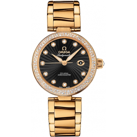 Women's Omega De Ville Ladymatic Collection 18K Yellow Gold Bracelet & Case Diamond Watch Style #425.65.34.20.51.002