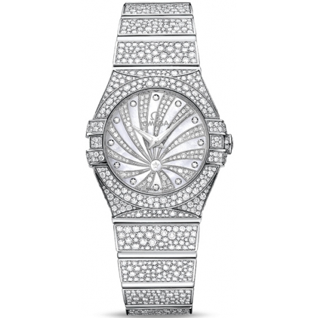 Women's Omega Luxury Edition Collection 18K White Gold Diamond Case & Bracelet Quartz Movement Watch Model #123.55.27.60.55.010
