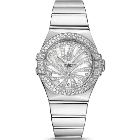 Women's Omega Luxury Edition Collection 18 White Gold Case & Bracelet Diamond Bezel Swiss Automatic Watch Model #123.55.31.20.55.011