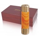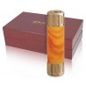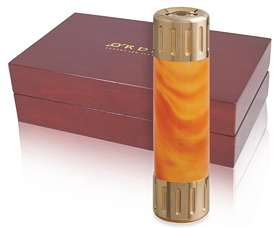 Orbita Flashlight F20121, The fiery color composition of the Flashlight emits a glowing, burning appearance of smoldering flames ready to ignite. Vibrant and pearlescent sunset colors create a visibly flammable sensation. Beginning with cast acrylic blanks, we turn and polish the sleeve material by hand. The tough acrylic material resists fading and is extremely durable. 24 Karat polished Gold plated end caps sandwich the hand-turned exotic bodies that identify the spectacular Goldlight series. There are five user-selectable lighting programs: High Beam, Medium Beam, Low Beam, Defense Strobe and S.O.S. Signal. Goldlight flashlights can also be custom ordered with leather, alligator, snakeskin or other unusual body covers. Body can be personalized with text, logos or images for promotional use or for special gift programs.