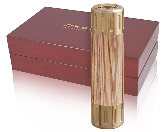 Orbita Flashlight F20113, Native to the Western Africa countries of Cameroon and Gabon, the Zebra-like appearance is due to the light colored sapwood in contrast to the dark colored grain. 24 Karat polished Gold plated end caps sandwich the hand-turned exotic bodies that identify the spectacular Goldlight series. There are five user-selectable lighting programs: High Beam, Medium Beam, Low Beam, Defense Strobe and S.O.S. Signal. Goldlight flashlights can also be custom ordered with leather, alligator, snakeskin or other unusual body covers. Body can be personalized with text, logos or images for promotional use or for special gift programs.