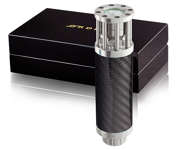 Orbita Flashlight F10111, Multiple layers of unidirectional carbon fibers are woven in a 2×2 twill tubular pattern and impregnated with clear epoxy resin. Upon curing, the finished cylinder provides a beautiful exterior appearance. Unique tie-rod construction allows use as both a brilliant flashlight and a low power lantern. There are six user-selectable lighting programs: High Beam, Low Beam, Defense Strobe, S.O.S. Signal, Lantern Mode and Beacon Mode. By softly pressing the glow-in-the-dark power button, or double clicking it, you can scroll through and select any one of the six modes of operation. Turn power on or off in any selected mode with a single click. Dustproof and splash proof to IP54 Standard.