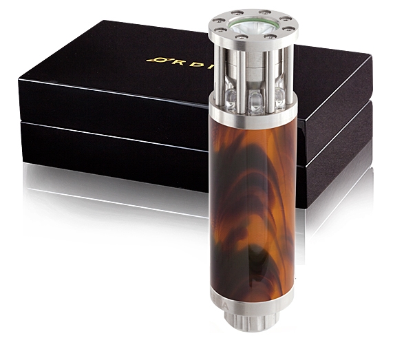 Orbita Flashlight F10118, brindled with intermixed shades of black, brown and orange, the Lighthouse Tortoise Light displays a brilliant rich tortoise shell appearance that is virtually indistinguishable from the natural material. The intriguing inlay of colors mimics the pigmentation of nature’s own unique creation of the astonishing tortoiseshell color. Unique tie-rod construction allows use as both a brilliant flashlight and a low power lantern. There are six user-selectable lighting programs: High Beam, Low Beam, Defense Strobe, S.O.S. Signal, Lantern Mode and Beacon Mode. By softly pressing the glow-in-the-dark power button, or double clicking it, you can scroll through and select any one of the six modes of operation. Turn power on or off in any selected mode with a single click. Dustproof and splash proof to IP54 Standard.