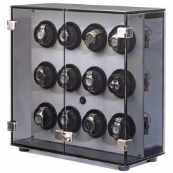 Store and wind your valuables in a chic way with this 12 watch winder cabinet W60148 a part of new Milano collection created by Orbita Corporation in United States. It's designed to wind up to twelve automatic mechanical timepieces at the same time. This device uses famous programmable technology that features a sophisticated microprocessor. You can select winding cycles of 650, 800, 950 or 1300 turns per day, as well as the direction of rotations - clockwise, counter-clockwise or reversing one. The case is made of 10 mm thick smoked, tempered glass as well as 6 mm thick glass doors; the faceplate features elegant white leatherette material. The hinges and lock are produced from brushed nickel. This unit is powered by AC adapter. If you buy from 24diamonds.com, official dealer of the brand, you get 1-year factory warranty as well as professional after-warranty service.