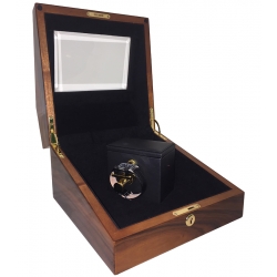 W31001 is the only single winder for hand-wound mechanical watches from Sempre collection, manufactured by Orbita Corporation. It features unique ingenious microprocessor that replicates and controls finger winding action. It senses the increasing resistance as the mainspring is being wound and automatically stops winding when the watch approaches the fully wound state. So this Sempre winder winds, but never overwinds your favorite timepiece. The unit is masterly made of high-gloss burl wood, and covered with rich black suede inside. The bottom surface of the box is also covered with suede to prevent damage to furniture. It is powered by a supplied AC adapter or alkaline batteries. There is also a set of plastic collets to fit any watch crown (3-9 mm in diameter). Buy online at 24diamonds.com, official dealer of Orbita brand, and you will get 1-year factory warranty as well as professional after-warranty service for every watch accessory.