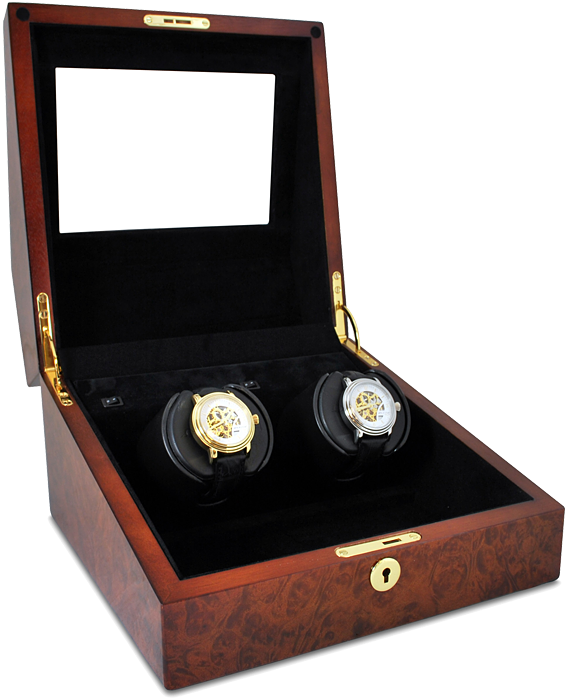 Burl wood double automatic watch winder W13011 is a part of Siena Rotorwind line, produced by Orbita Corporation. The unit is masterly made of high-gloss burl wood, and fully lined with rich black suede inside. The bottom surface of the box is also covered with suede to prevent damage to furniture. It features patented rotorwind technology that perfectly imitates the wrist motion. There is an option to switch between 10 or 15-minute winding mode. This winder is quipped with long-lasting, high-energy lithium batteries. Buy online at 24diamonds.com, official dealer of Orbita brand, and you will get 1-year factory warranty as well as professional after-warranty service for every watch accessory. Please check other double watch winders.