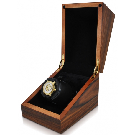 Luxurious teak wood single automatic watch winder W06541 is a part of Sparta Deluxe collection, produced by Orbita Corporation. The box is crafted in high-gloss teak wood, and covered with genuine black suede inside for a gentle touch. This single winder is equipped with high-quality motor that uses famous patented rotorwind winding technology. So it is designed to successfully wind virtually every automatic mechanical timepiece. The unit is powered with long-lasting lithium batteries that guaranteed to work for up to 5 years. Buy online at 24diamonds.com, official dealer of Orbita brand, and you will get 1-year factory warranty as well as professional after-warranty service for every watch accessory. Please check other single watch winders.