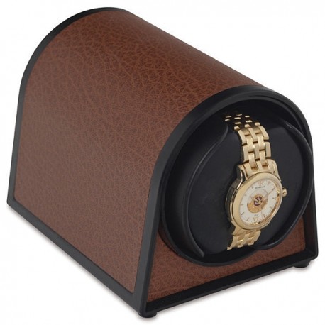 Brown faux leather single automatic watch winder W05020 is a part of Sparta Mini collection, produced by Orbita Corporation. The size of this affordable unit is mini but the performance is maximal. Because it is employed with patented rotorwind winding technology which gives six revolutions per hour (one rotation every ten minutes). That has been tested to successfully wind virtually every automatic mechanical timepiece. This single watch winder is powered by AC adapter. More than that it is absolutely quiet in operation and ideal for bedside use! Buy online at 24diamonds.com, official dealer of Orbita brand, and you will get 1-year factory warranty as well as professional after-warranty service for every watch accessory. Please check other single watch winders.