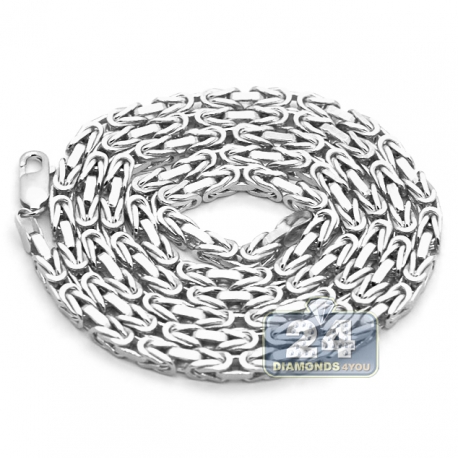 Pure 18K White Gold Solid Byzantine Mens Chain 4 mm
