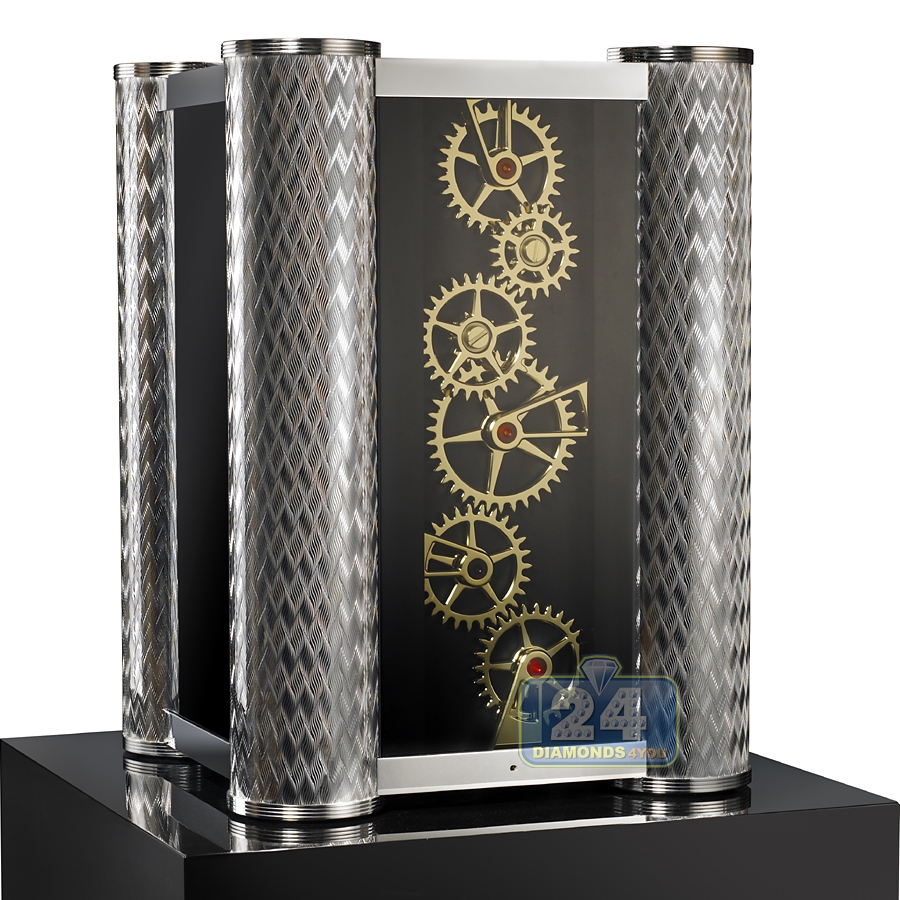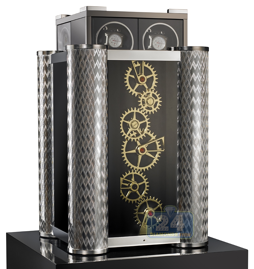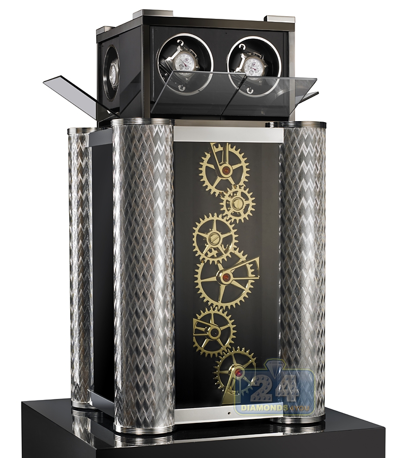 Undoubtedly, you're looking at one of the most unique winding devices available on the market! This watch winder is called Safe Lift, and created by RDI-Charles Kaeser in Switzerland. Artfully handcrafted from more than 1200 details, this winder is an extraordinary find for passionate watch enthusiasts. From 4 to 25 individual silent watch winders can be customized in the safe that is opened by remote control. The dimensions in an open position are the following: 19.75 inches in length, 17.25 inches in width and 27 inches in height. It also comes with a pedestal of 40 inches in height. Please contact us to custom-made this gorgeous Safe with your requirements.