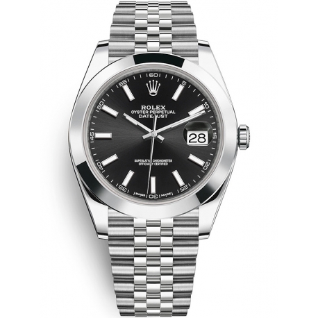 Rolex Datejust 41 Steel Black Dial Smooth Bezel Jubilee Watch 126300