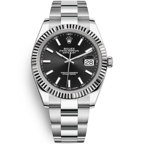 Rolex Datejust 41 Steel White Gold Black Dial Fluted Bezel Oyster Watch 126334