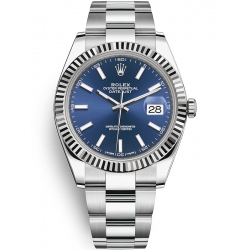 Rolex Datejust 41 mm Steel 18K White Gold Case Blue Dial Fluted Bezel Oyster Bracelet Watch - Reference 126334-0001 / 126334BLSO