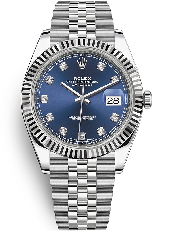 Rolex Datejust 41 Steel White Gold Diamond Blue Dial Jubilee Watch 126334