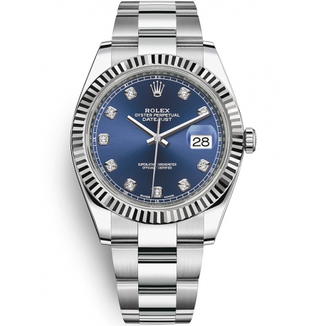 Rolex Datejust 41 Steel White Gold Diamond Blue Dial Oyster Watch 126334
