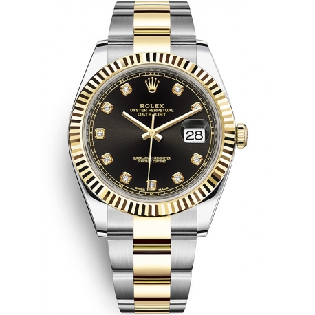 Rolex Datejust 41 Steel Yellow Gold Diamond Black Dial Oyster Watch 126333