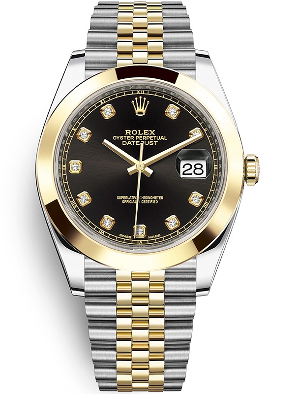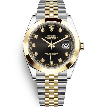 Rolex Datejust 41 Steel Yellow Gold Diamond Black Dial Jubilee Watch 126303