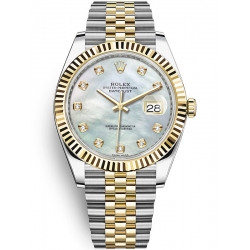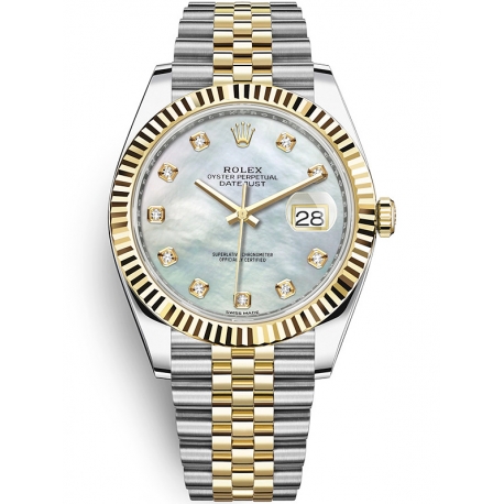 Rolex Datejust 41 mm Steel 18K Yellow Gold Case Diamond White Mother-of-Pearl Dial Fluted Bezel Jubilee Bracelet Watch - Reference 126333-0018