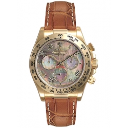 Rolex Cosmograph Daytona 18K Yellow Gold Black Mother-of-Pearl Dial Alligator Leather Strap 40 mm Watch - Reference 116518-BMRL