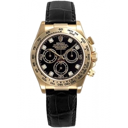 Rolex Cosmograph Daytona 18K Yellow Gold Diamond Black Dial Alligator Leather Strap 40 mm Watch - Reference 116518-DD