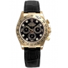 Rolex Cosmograph Daytona Yellow Gold Diamond Black Dial Leather Watch 116518-DD