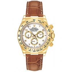 Rolex Cosmograph Daytona 18K Yellow Gold Arabic White Dial Alligator Leather Strap 40 mm Watch - Reference 116518-WAL