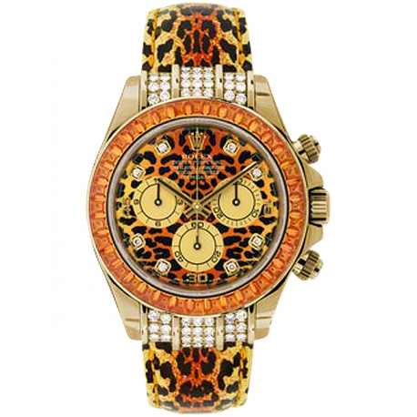Rolex Cosmograph Daytona Leopard 18K Yellow Gold Sapphire Bezel Leather Strap 40 mm Watch - Reference 116598-SE