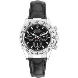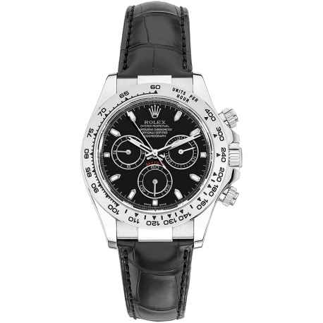 Rolex Cosmograph Daytona 18K White Gold Black Dial Alligator Leather Strap 40 mm Watch - Reference 116519-BKSL