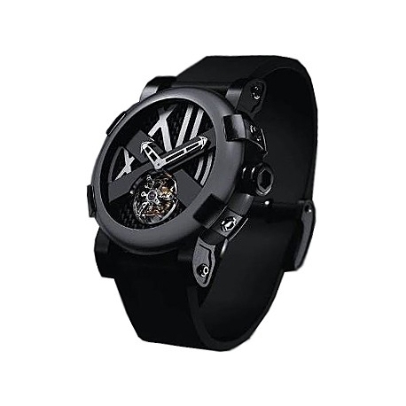 Other Features: Caliber, 1000RJ by BNB - Tourbillon. A one-minute Tourbillon suspended without ball bearing at 6 o'clock. Limited Edition, 9 pieces. Jewels, 19 rubies. Rate frequency, 21600 vph. Power reserve, >120 hours. Flank, black satin-finished steel. Paws, black ceramic with titanium screws. Lug, black satin-finished steel. Lug insert, black satin-finished steel. Crown, black steel with black rubber. Water resistance, 5 atm. Strap, black rubber or crocodile hornback with black steel folding clasp