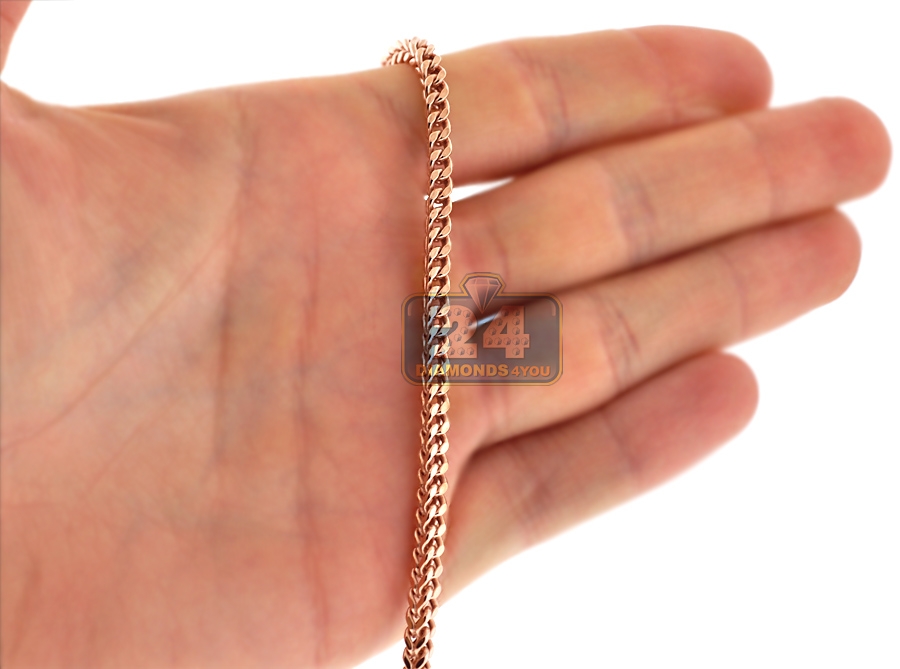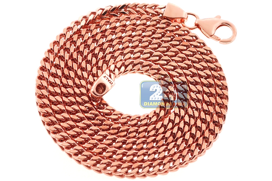 Our hollow franco link chain is ideal for your favorite pendant or great on its own! It's masterly produced from precious 925 sterling silver, and covered with rose gold plating that helps prevent tarnishing and gives a bright color. The necklace measures 3.5 mm in width, available in 24, 26, 28 or 30 inches in length; and secures with a safe lobster claw clasp. This is a worthy piece of jewelry to update your chain collection!