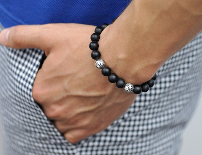 Sterling Silver Celtic Bead Matte Onyx Bracelet by Edus&Co