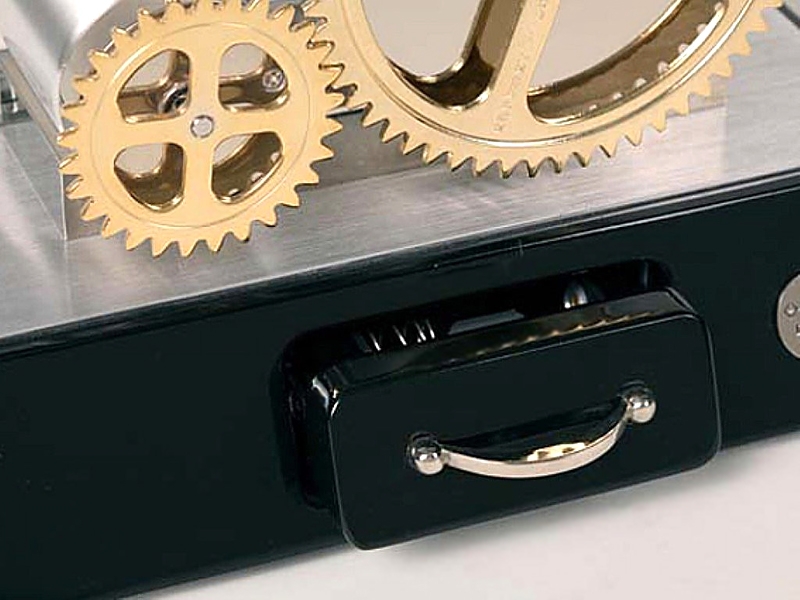 Check one of the most original winding machines, this single automatic watch winder W192 is also known as Optima Cogwheel, designed by Rapport of London. It features a central drum made of brushed aluminum that is turned by a series of brass cogwheels. They're mounted on a high-gloss ebony wood base. Your valuable timepiece is observed through the hinged door with enlarging glass lens. The watch holder is lined with black leather, and has an adjustable soft clip that accommodates any watch size. Winding mechanism works very quietly. It offers 2 speed rotation options (1130-1690 or 3960 turns per day) as well as 3 direction rotation modes (clockwise, counter-clockwise or bi-directional). This unit can be powered by AC adapter or batteries. It measures 11.4 inches in width, 7.2 inches in height, 6.6 inches in depth, and weights about 7.7 pounds. We are an official dealer of the brand. So you get factory warranty and free domestic shipping for this item.