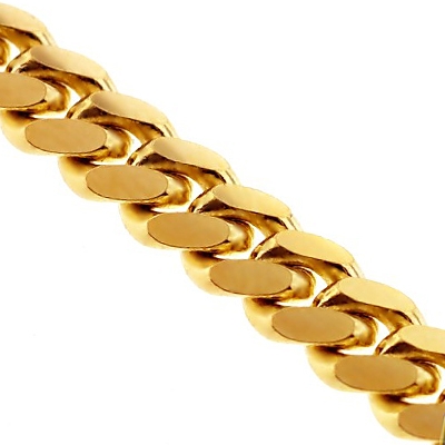 This solid miami cuban link chain is a timeless piece of jewelry to add to your collection or to give as a gift! It's made of Italian 10k yellow gold, and features high-polished smooth finish. This real gold chain measures 3.5 mm in width, and available in 22, 24, 26 or 30 inches in length. Don't be afraid to lose this amazing necklace because it's secured by a safety lobster claw clasp. Update your jewelry collection with a classic men's gold cuban chain!