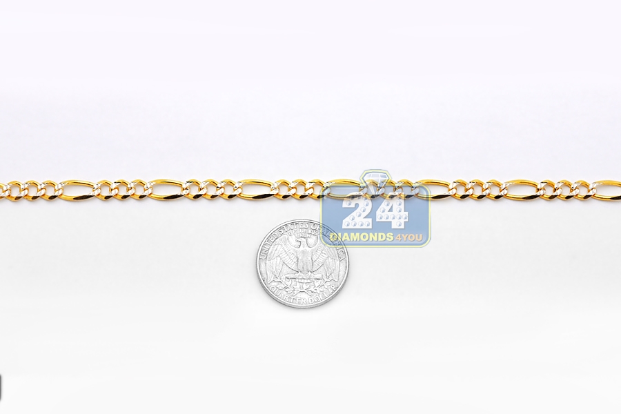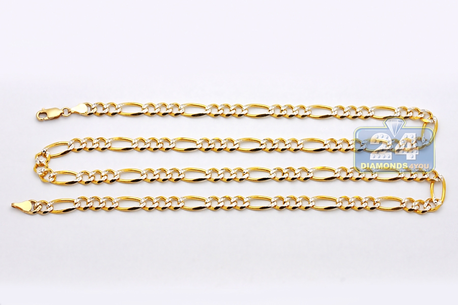 Solid 14K Yellow Gold Figaro Diamond Cut Mens Chain 5.5 mm