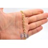 Keep your look shimmery and sleek with our solid figaro link chain! Professionally created from hot 14 karat yellow gold, it has white rhodium covered diamond cut patterns on ultra smooth finish. The piece features 5.5 mm in width, and available in length of 18, 20, 22, 24 or 26 inches. Depending on the length, its weight varies from 16 to 22 grams. Our men's gold chain is closed by a comfortable lobster clasp. Enhance your look with the elegance of the yellow gold figaro necklace!