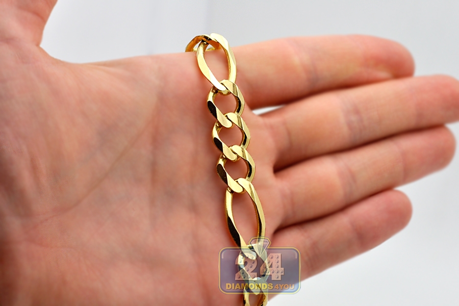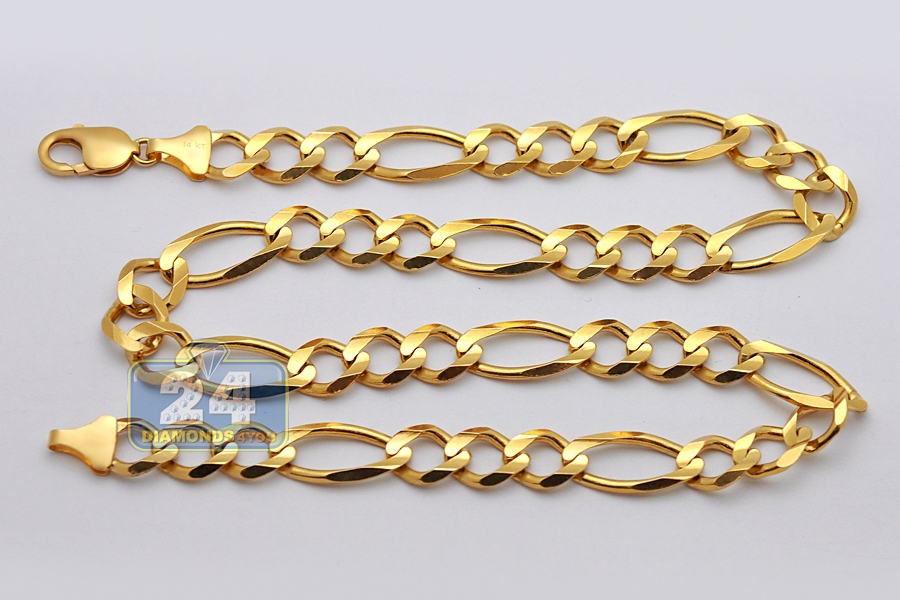 Solid 14K Yellow Gold Figaro Link Mens Chain 12 mm