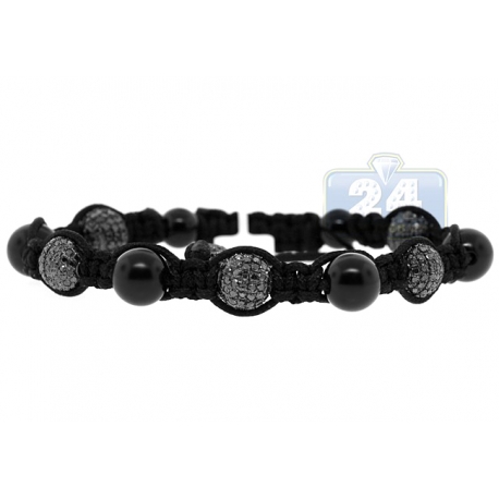 This shambala-style bead bracelet is a gorgeous addition to any look! It features 8 black onyx beads, and 5 stainless steel ball covered with black rhodium. Steel beads are iced out with mysterious black round-cut natural diamonds, all totaling 7.00 carats approximately. These gorgeous balls are tied together with black braided macrame string. Very comfortable and easy pull closure makes this stunning adjustable bracelet easy on and off. Stylish and unique at the same time this diamond bead bracelet is great for both men and women!