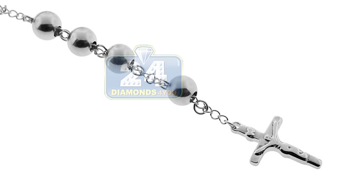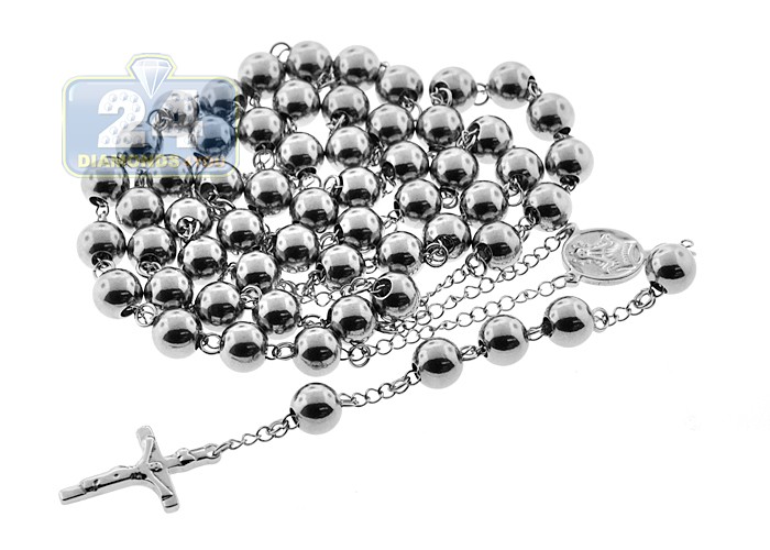 This beautiful rosary is made of large stainless steel beads with high-polished finish. The center piece features a medallion, which leads to a drop ending in a gorgeous cross. This stainless steel rosary is a beautiful way to profess your faith!