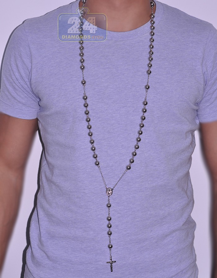 Stainless Steel Mens Jumbo Rosary Chain 44 Inches