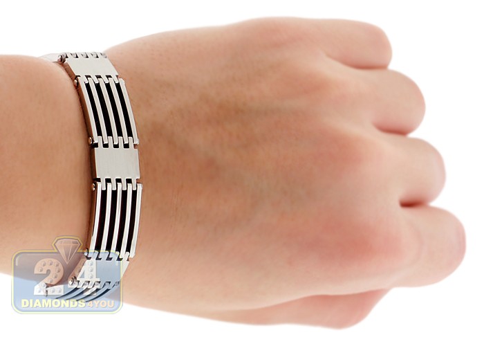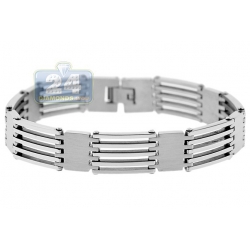 Stainless Steel Lined Block Link Mens Bracelet 13 mm 9 Inches