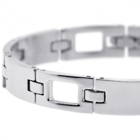 Stylish and trendy wrist bracelet designed in sectioned links that ably crafted in stainless steel, and highly polished for ultra-smooth touch. It also measures 8 inches in length, 10 mm in width; and secured with jewelry clasp. This men's bracelet is a impressive accent to casual ensembles!