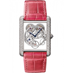 Tank Louis Cartier Skeleton XL Model Diamond 18K White Gold Case Fuchsia Alligator Leather Strap Women's Watch - Reference HPI00705