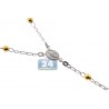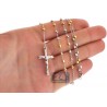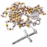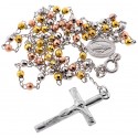 Tri Color Silver Diamond Cut Bead Rosary Necklace 3 mm 24 Inches