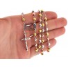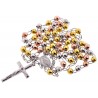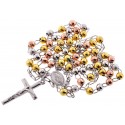 Tri Color Silver Diamond Cut Rosary Mens Necklace 5 mm 26 Inches