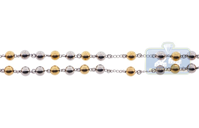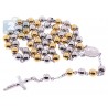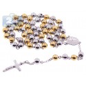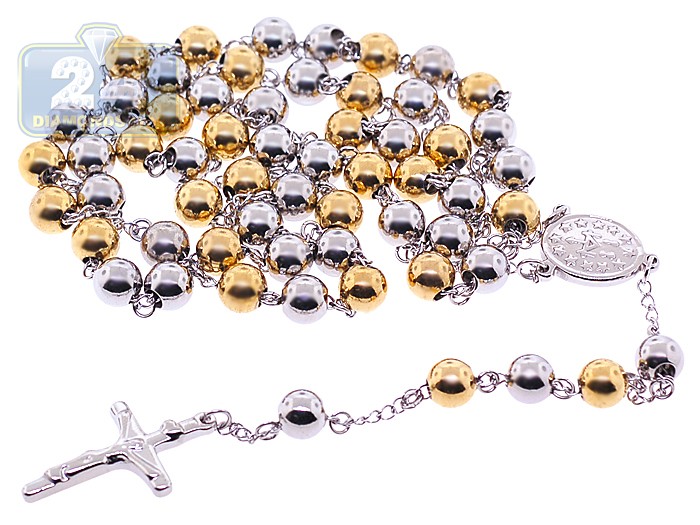 Two Tone Stainless Steel Mens Rosary Necklace 22 1/2 Inches