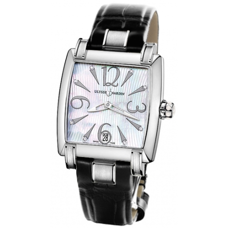 Women's Ulysse Nardin Caprice Series Pearl Dial Stainless Steel Case Black Leather Band Watch Style #133-91/691BC.