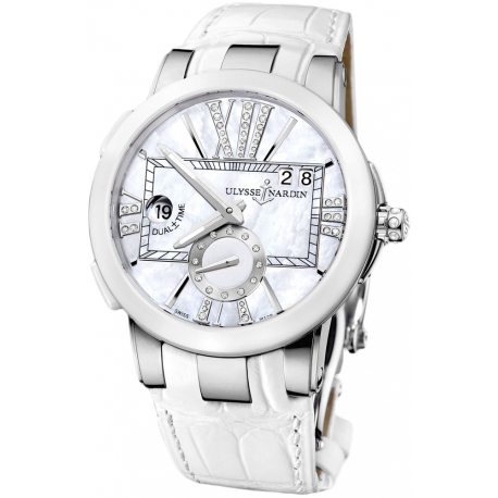 Women's Ulysse Nardin Executive Dual Time Series White Ceramic Bezel Watch Model #243-10/391.