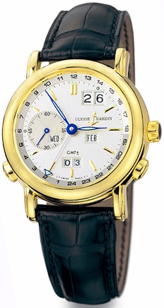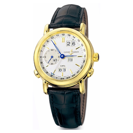 Men's Ulysse Nardin GMT Perpetual Calendar 18K Yellow Gold Case Black Alligator Band Watch Model #321-22.