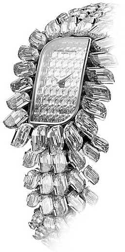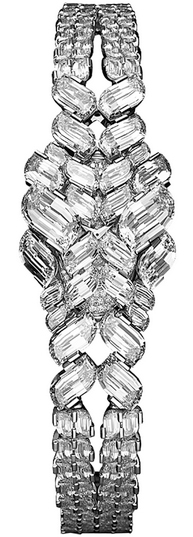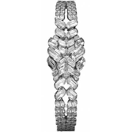Limited Edition Vacheron Constantin Metiers d'Art Kalla features a 18k white gold, oval case masterly set with diamonds in spectacular fashion. It is fitted with a matching bracelet. It is powered by caliber 1005, which is in essence a JLC 101 movement.