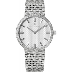 Mens Vacheron Constantin Patrimony Classique Watch, 18kt white gold case (35mm diameter, 6.3mm thick), 18kt white gold 206 style bracelet, silver-white textured dial with white gold index hour markers, small-seconds dial at 6 o'clock, 20 jewel 1400 Caliber manual-winding mechanical movement with 40 hour power reserve, scratch-resistant sapphire crystal, water-resistant to 30 meters.